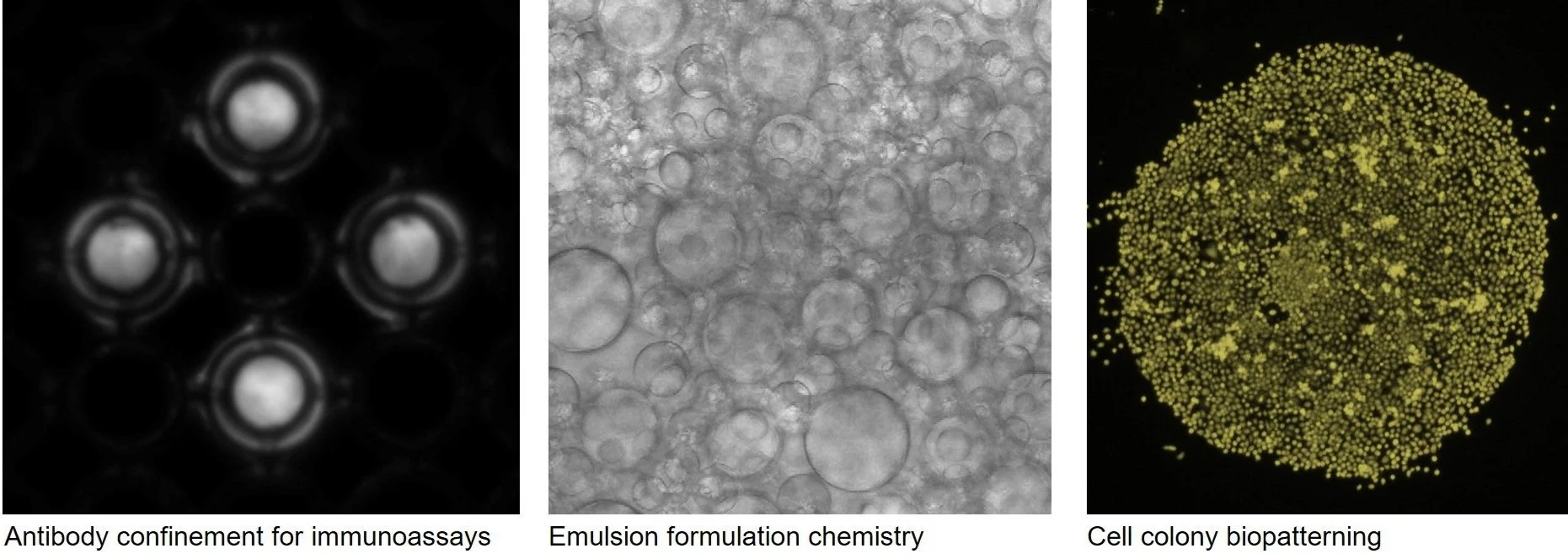 Aqueous two-phase systems (ATPSs) form when solutions of two incompatible polymers are mixed together at high enough concentrations. These system have traditionally been used for biomolecule and bioparticle separation from crude mixtures. We are exploring the fundamental physicochemical properties of a variety of newly-discovered ATPSs. We are also exploring additional applications for these interesting polymer systems in biopatterned cell based assays and high throughput biomolecular assays.